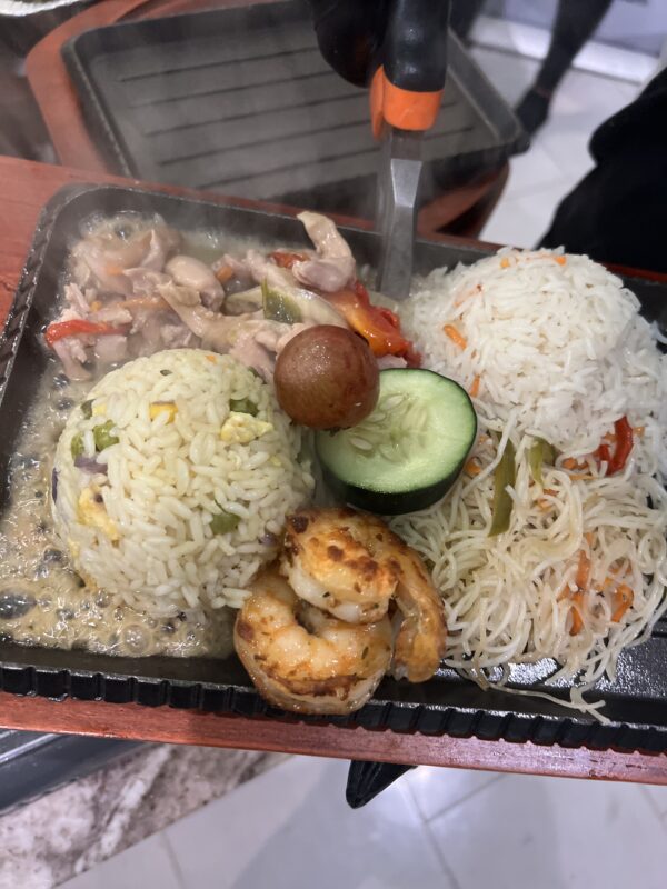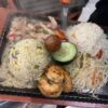 Stir fry Rice noodles with vegetable serve with white rice and chicken sauce